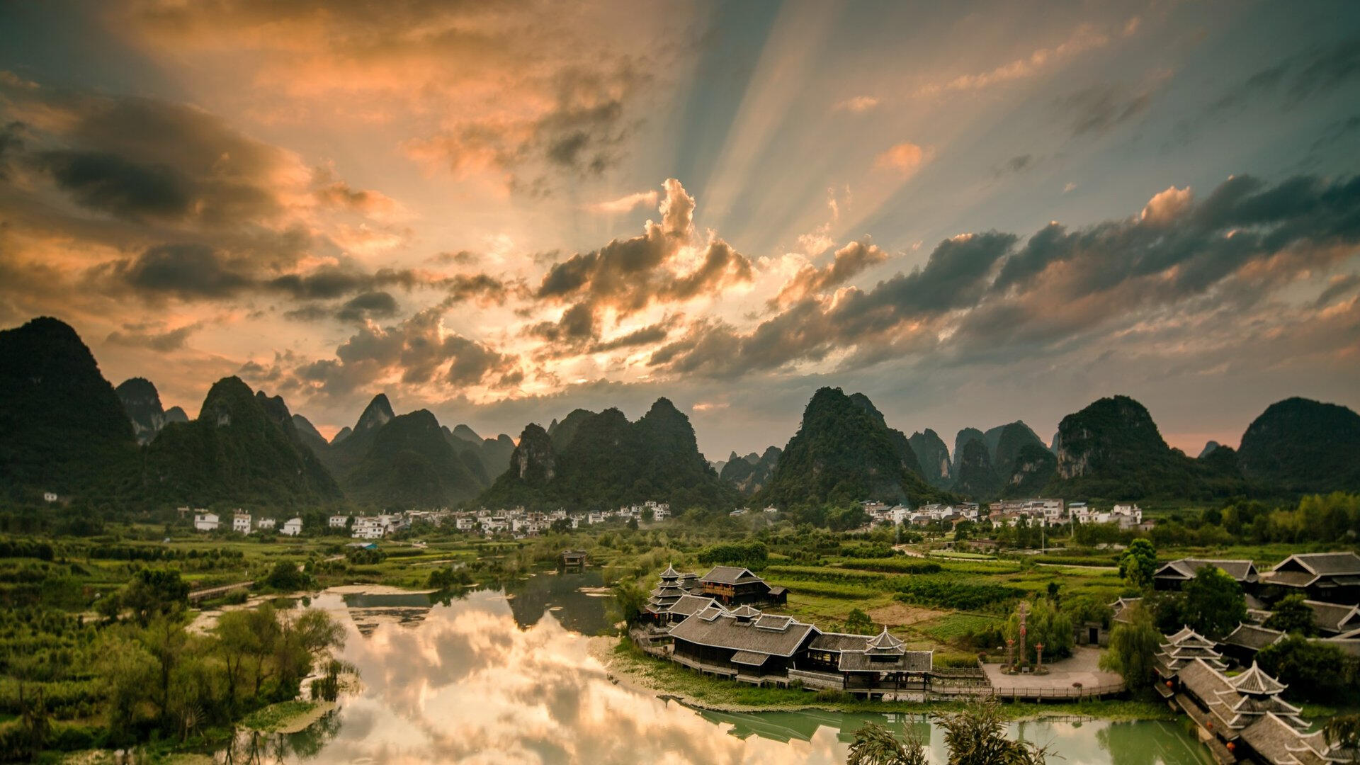 Sunrise on karst mountains and the Li River in Guilin, Guangxi regionBeijing International Airport - PhotoTalk